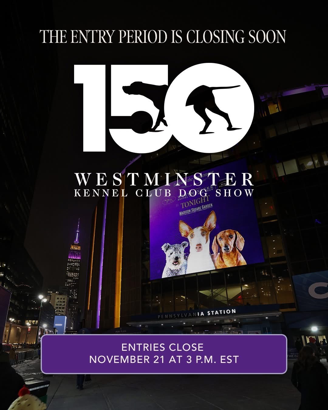 Entries for the 2026 Westminster Kennel Club Dog Show close on November 21 at 3 p.m. EST!