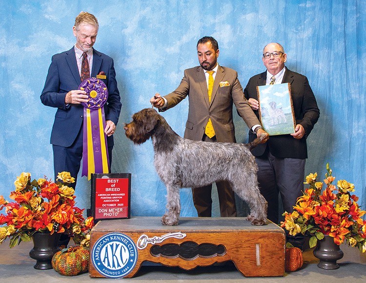 This fictitious dog, Ch. Schoolmaster’s Spectacles, is an example of a dog that is number 1 in Breed points. The number 258 shows the total number of dogs he defeated in his own breed by winning Best Of Breed.