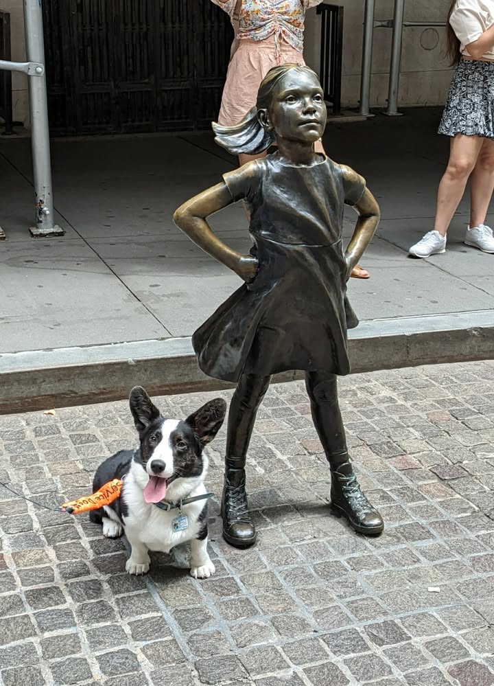 River the #CardiganWelshCorgi like to visit the Fearless Girl Statue in NYC!