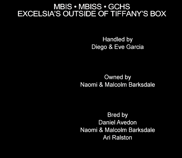 Dog Reg: GCHG Excelsia’s Outside Of Tiffany’s Box [Dog]